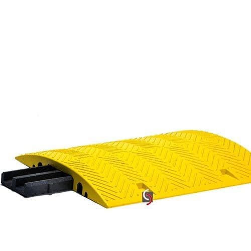 Kabelbrücke, Überfahrschutz 800 x 600 x 80 mm Kabel geeignet. Hergestellt aus 100% Recyclingmaterial- gelb lackiert für Lkw geeignet.