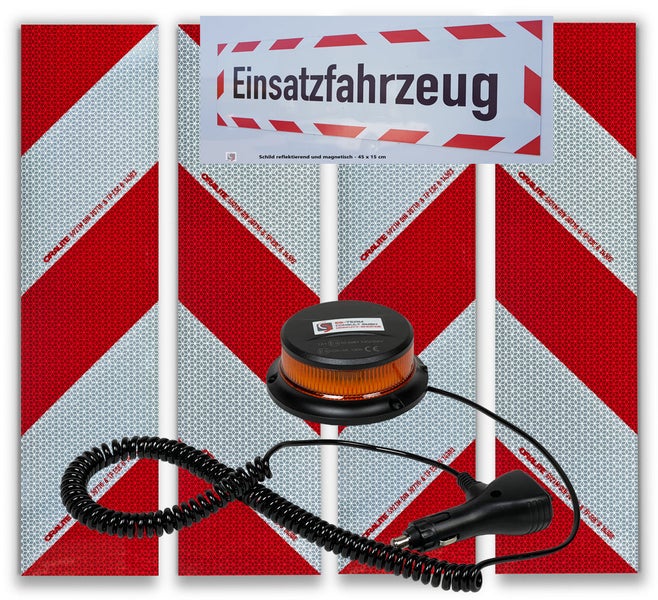 UvV Kfz Warnmarkierung DIN30710 Magnetset + FLASH LED Blitzer Magnet / Einsatzfahrzeug