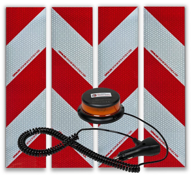 LED Blitzer UV-FLASH magnetisch + 4 x Kfz-Warnmarkierung (Magnetfolie) mit Orafol Folie (DIN30710) 564x141mm Warnmarkierungsset