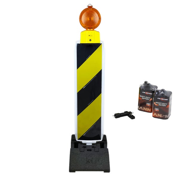 UvV Leitbake Fußplatte (18 / 30 kg) Baustelle rot/weiß oder Lager gelb, schwarz / RA1 schwarz / gelb / K1 (28 kg) / Baustellenleuchte gelb + 2 Batterien inkl. Lampenschlüssel