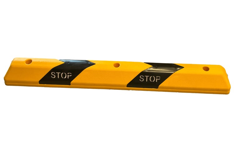 UvV PARKSTOP -Radstopper Fahrzeugstopper Parkplatzbegrenzer + STOP reflektierend / 1.100 mm gelb