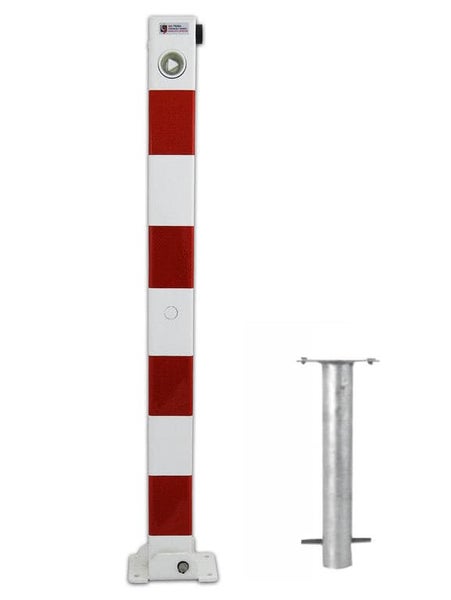 UvV Parkis XXL-D Absperrpfosten aus Stahl 70 x 70 mm, klappbar (umlegbar), Dreikantverschluss, inkl. Bodenhülse/Bodenanker zum Einbetonieren.