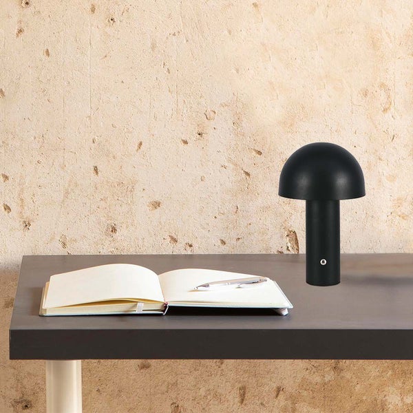 Die Lampe aus robustem schwarzem Metall ist funktional und verleiht jedem Raumdekor einen Hauch von Eleganz. Dank ihrer kompakten Größe eignet sie sich für verschiedene Tischplatten und Räume. Außerdem ist sie dank ihres wiederaufladbaren Akkus tragbar und bequem, ohne dass eine ständige Stromquelle benötigt wird. Die Leuchte ist mit der Schutzart IP20 gegen feste Gegenstände geschützt und eignet sich daher perfekt für den Einsatz in Innenräumen.