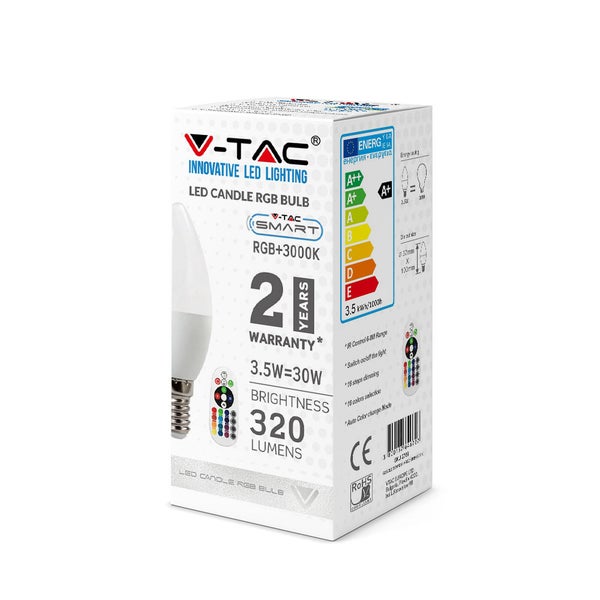 V-TAC VT-2214 - LED-Lampen - Kerze E14 RF RGB - IP20 - Weiß - 3,5 Watt - 320 Lumen - RGB+6400K
