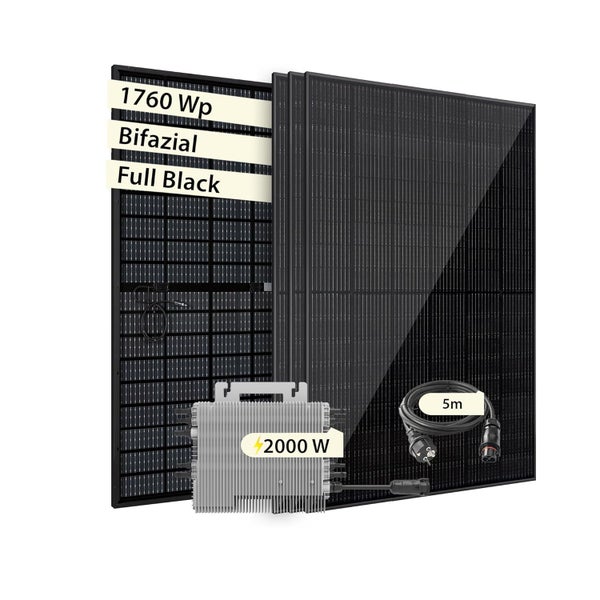 VALE Balkonkraftwerk Bifazial 1760 Wp Full Black - Deye M200G4 Wechselrichter - Hochwertiges Solarpanel Set - 5m AC-Kabel