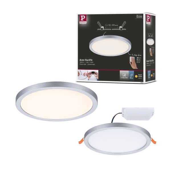 VariFit LED Einbaupanel 3-Step-Dim Areo IP44 rund 175mm 13W 1200lm 3000K Chrom matt dimmbar
