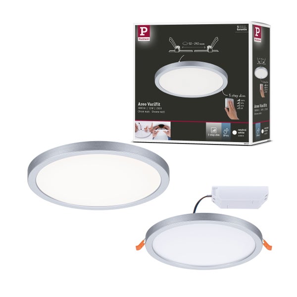 VariFit LED Einbaupanel 3-Step-Dim Areo IP44 rund 175mm 13W 1200lm 4000K Chrom matt dimmbar