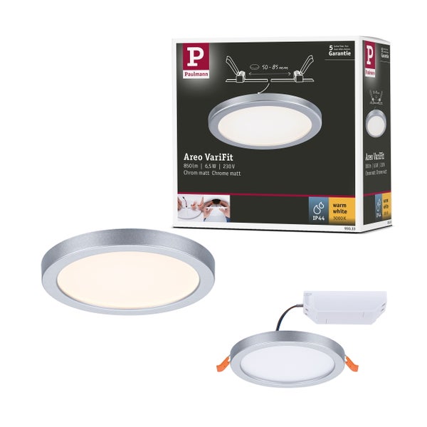VariFit LED Einbaupanel Areo IP44 rund 118mm 6,5W 550lm 3000K Chrom matt