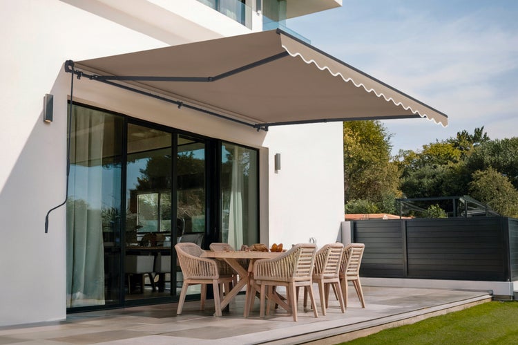 VECCHIO einteilige Markise 4m x 3m Taupe - Premium-Canvas 320 g/m²
