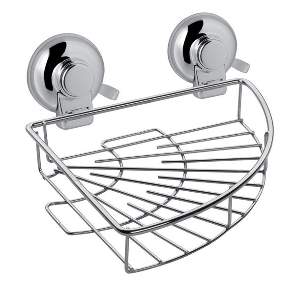 Eckhalter für das Badezimmer, aus verchromtem Metall mit Saugnapfbefestigung, um die Dusche effizient und funktionell zu gestalten. Der Eckhalter aus der Menta-Kollektion wird mit einem Saugnapf an der Wand befestigt, eine Lösung, die invasive Mittel wie Schrauben oder Kleber, die die Wände und die Duschverkleidung beschädigen können, überflüssig macht. Der Halter ist aus verchromtem Metall gefertigt und hält einer maximalen Belastung von 10 kg stand.