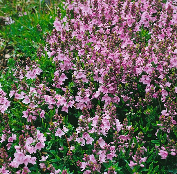 Veronica prostrata 'Rosea', Ehrenpreis, rosa Blüten, ca. 9x9 cm Topf