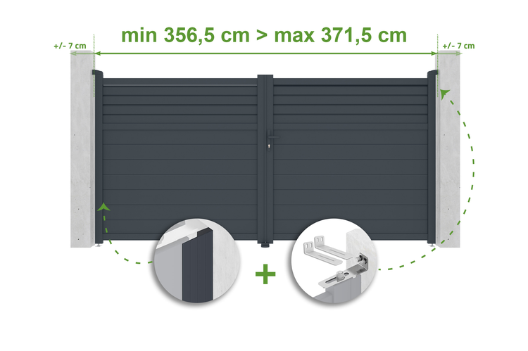 Verstellbares Drehtor Breite 3,5m CARPATIA H.180cm grau Aluminium