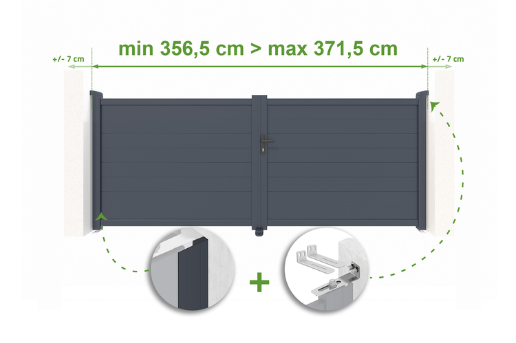 Verstellbares Drehtor Breite 3,5m EIGER H.140cm grau Aluminium