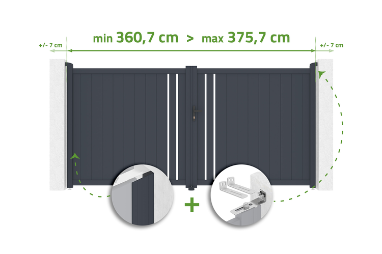 Verstellbares Drehtor Breite 3,5m GIONA H.180cm grau Aluminium