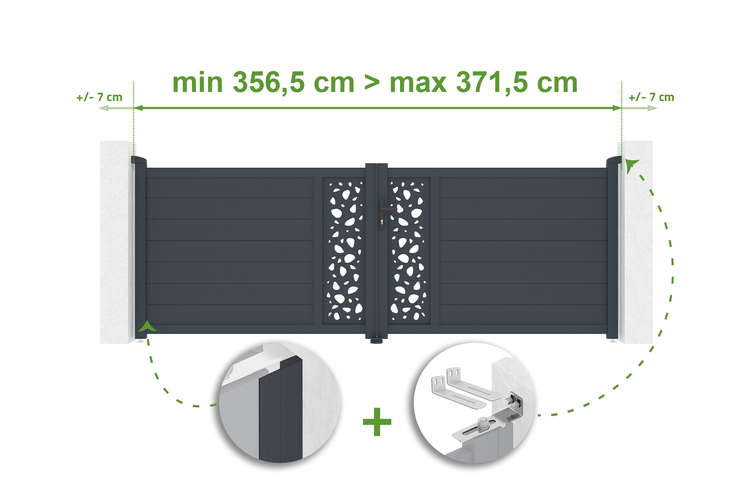 Verstellbares Drehtor Breite 3,5m SUNNY H.120cm grau Aluminium