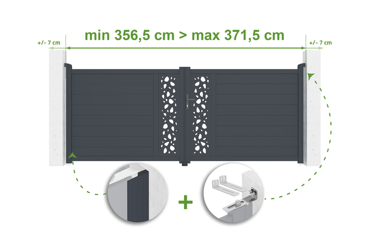 Verstellbares Drehtor Breite 3,5m SUNNY H.140cm grau Aluminium