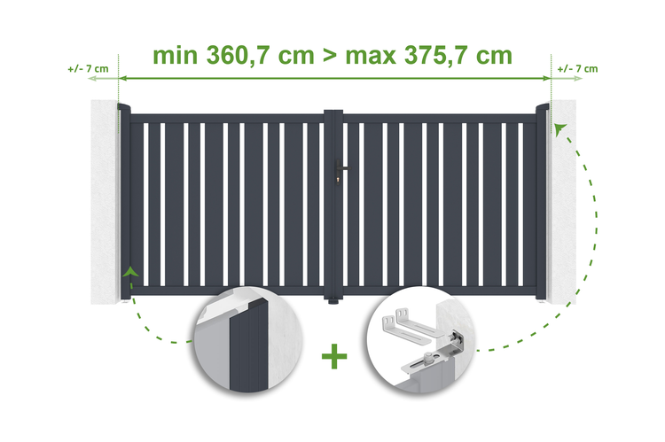 Verstellbares Drehtor Breite 3,5m VEYMONT H.160cm grau Aluminium
