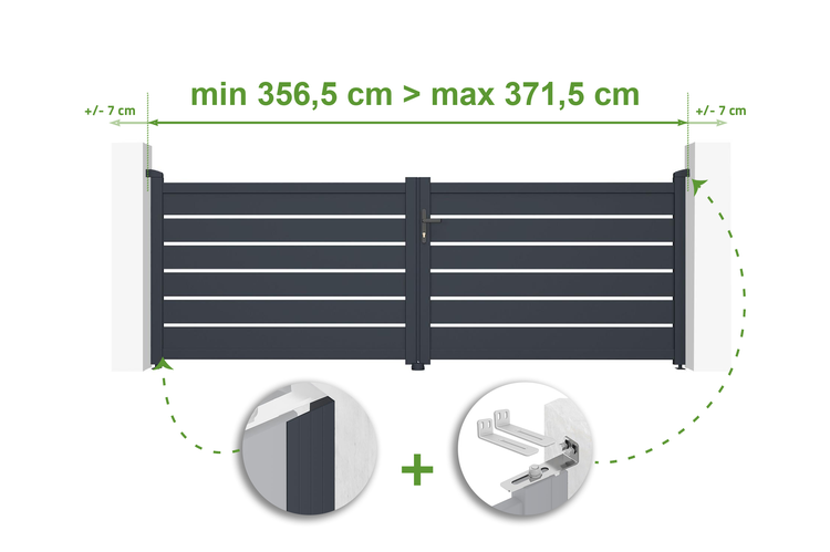 Verstellbares Drehtor Breite 3,5m VOGEL H.120cm grau Aluminium