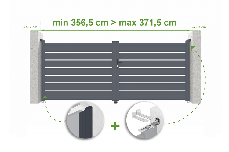 Verstellbares Drehtor Breite 3,5m VOGEL H.140cm grau Aluminium