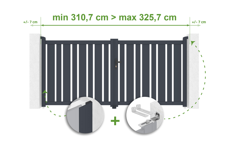 Verstellbares Drehtor Breite 3m VEYMONT H.140cm grau Aluminium