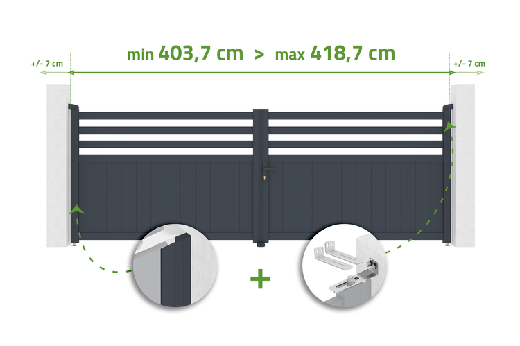 Verstellbares Drehtor Breite 4m NEVIS H.140cm grau Aluminium