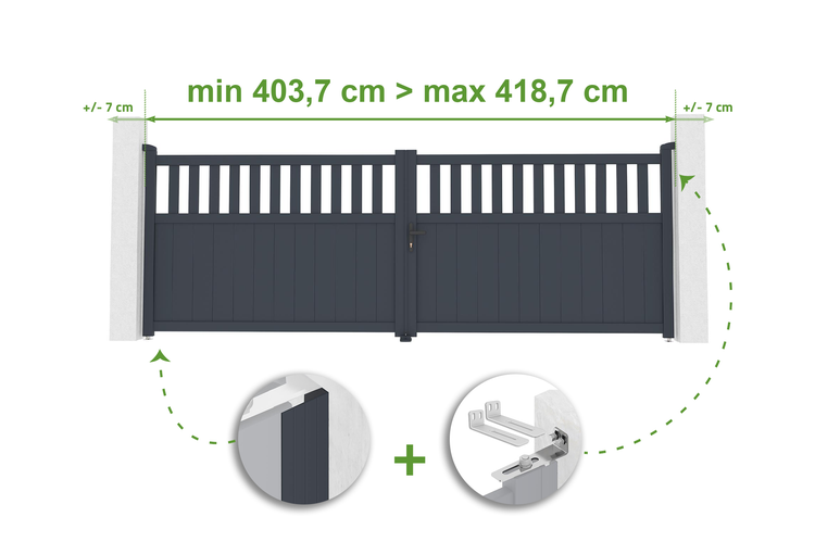Verstellbares Drehtor Breite 4m SANTIS H.140cm grau Aluminium