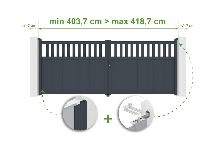 Verstellbares Drehtor Breite 4m SANTIS H.160cm grau Aluminium