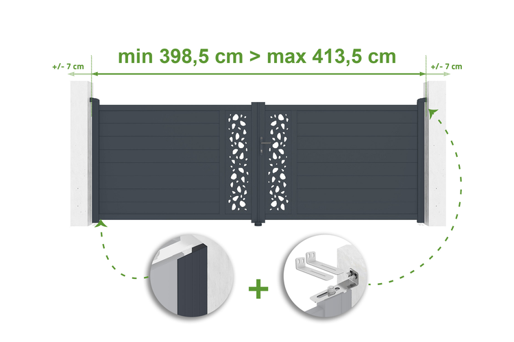 Verstellbares Drehtor Breite 4m SUNNY H.140cm grau Aluminium