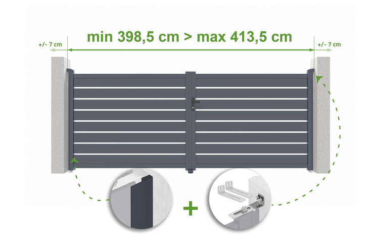 Verstellbares Drehtor Breite 4m VOGEL H.160cm grau Aluminium