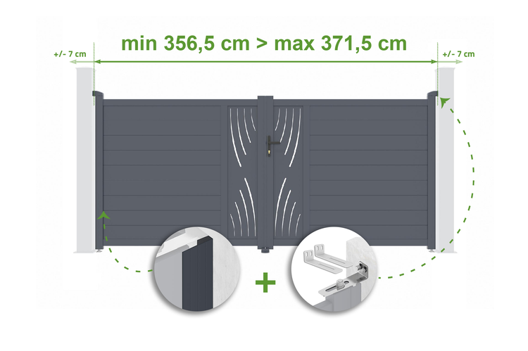 Verstellbares Flügeltor Breite 3,5m VELETA H.160cm grau Aluminium