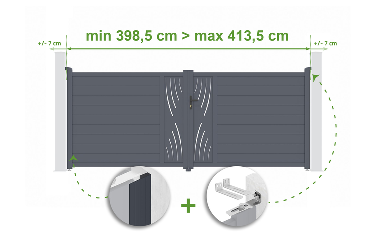 Verstellbares Flügeltor Breite 4m VELETA H.160cm grau Aluminium