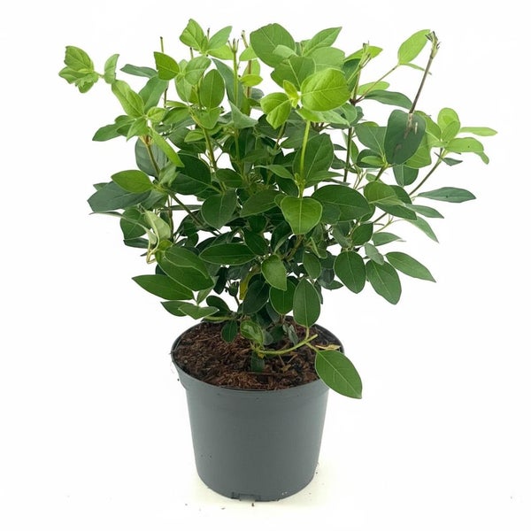 Viburnum tinus ‘Eve Price’, der Lorbeerschneeball (botanisch Laurustinus), ist ein immergrüner Blütenstrauch, der mit seinem dichten, rundlich-kompakten Wuchs und glänzend dunkelgrünem, lederartigem Laub ganzjährig Struktur in den Gartenstrauch-Bestand bringt. Bereits im Spätherbst zeigen sich roséfarbene Knospen, aus denen sich von Winter bis ins Frühjahr zahlreiche weißliche Blütenschirme entwickeln; die zart duftenden Blüten kontrastieren elegant mit dem Laub und werden im Anschluss oft von attraktiven, metallisch blau-schwarzen Früchten begleitet. ‘Eve Price’ bleibt angenehm kompakt und eignet sich dadurch hervorragend als Zierstrauch für den Vorgarten, als Solitär im Beet, für Gruppenpflanzungen und als niedrige, formschöne Heckenpflanze. In großen Kübeln verschönert der immergrüne Schneeball Terrasse, Balkon oder den Eingangsbereich und überzeugt als pflegeleichte Kübelpflanze mit hoher Schnittverträglichkeit und guter Formbarkeit. Der ideale Standort ist sonnig bis halbschattig, möglichst warm und windgeschützt; in milden Lagen zeigt sich die Sorte besonders zuverlässig. Der Boden sollte durchlässig, humos und gleichmäßig frisch sein, Staunässe ist zu vermeiden. Eine Frühjahrsgabe Langzeitdünger unterstützt Blühfreude und Vitalität, ein leichter Rückschnitt nach der Blüte hält den Blütenstrauch kompakt. In kühleren Regionen ist Winterschutz empfehlenswert, vor allem im Kübel, wo eine isolierende Unterlage und ein geschützter Platz an der Hauswand vorteilhaft sind. Mit ihrer langen Blütezeit, dem eleganten immergrünen Laub und der vielseitigen Verwendbarkeit ist Viburnum tinus ‘Eve Price’ eine wertvolle Wahl für stilvolle, ganzjährig ansprechende Garten- und Terrassengestaltungen.