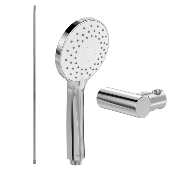 Villeroy & Boch Universal Showers Handbrause-Set (3 in 1 Bundle), bestehend aus Duschkopf inkl. Handbrausehalter (rund) und Handbrauseschlauch 1,60m, Chrom