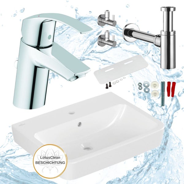 Villeroy & Boch Waschtisch-Komplettset 60 cm mit Armatur, LotusClean Beschichtung und Schallschutz