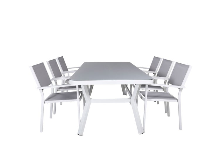 Virya Gartenset Tisch 100x200cm und 6 Stühle Copacabana schwarz, grau, weiß. 100 X 200 X 74 cm
