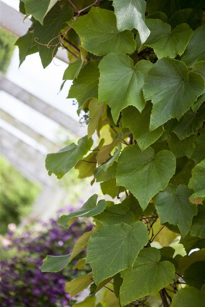 Vitis vinifera 'Coignetiae', auch bekannt als Japanische Weinrebe, fasziniert mit ihren großen, herzförmigen Blättern, die im Herbst in leuchtendem Rot erstrahlen. Diese robuste Kletterpflanze ist ideal zur Begrünung von Pergolen, Zäunen und Fassaden. Sie ist pflegeleicht, winterhart und bietet Vögeln Schutz und Nahrung. Die Japanische Weinrebe kann eine Wuchshöhe von bis zu 10 m erreichen. Geliefert wird die Pflanze mit einer Höhe von 60-100 cm.