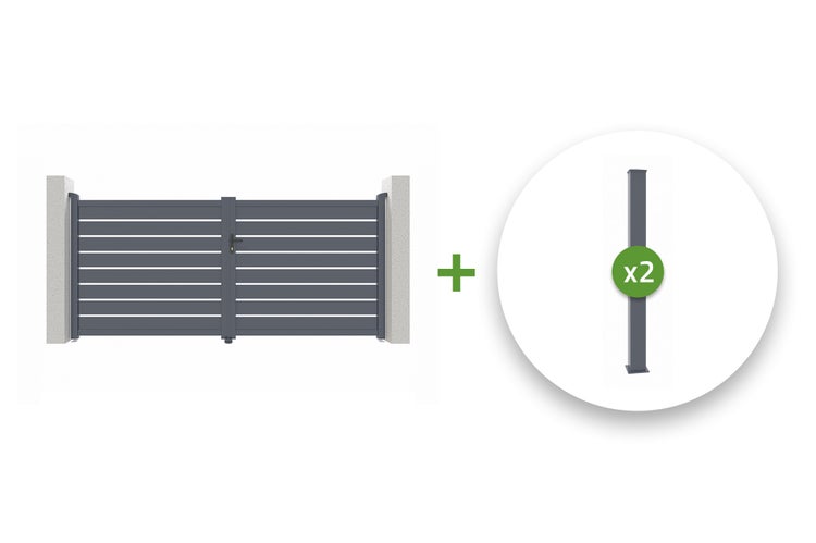 Die Pfosten sind in unseren Kits nicht enthalten, da sie für die Installation Ihres Flügeltors nicht unbedingt erforderlich sind, falls Ihr Außenbereich bereits Pfeiler/Pfosten hat.