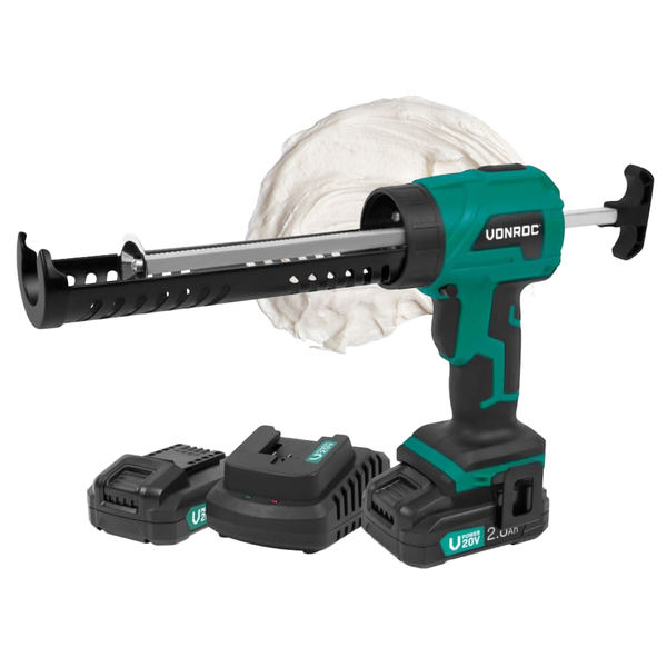 Diese Kartuschenpistole wird mit 2 Akkus und Ladegerät geliefert, da sie Teil der VONROC Akku-Plattform ist. Der Kauf von austauschbaren 2.0Ah- oder 4.0Ah-Akkus und Ladegeräten ist optional. Wenn Sie die Kartuschenpistole mit einem anderen Produkt aus der VONROC VPower 20V-Plattform kombinieren möchten, benötigen Sie nur einen Akku und ein Schnellladegerät! Wählen Sie einfach das Nötigste zu einem günstigen Preis.