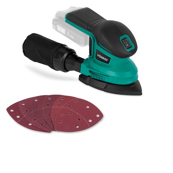 VONROC Deltaschleifer Akku, Dreieckschleifer, Multischleifer - Schleifgerät, Handschleifer mit Staubbehälter 20V exkl. Akku & Ladegerät - Für Holz, Kunststoff, Metall - inkl. 6 Schleifpapier