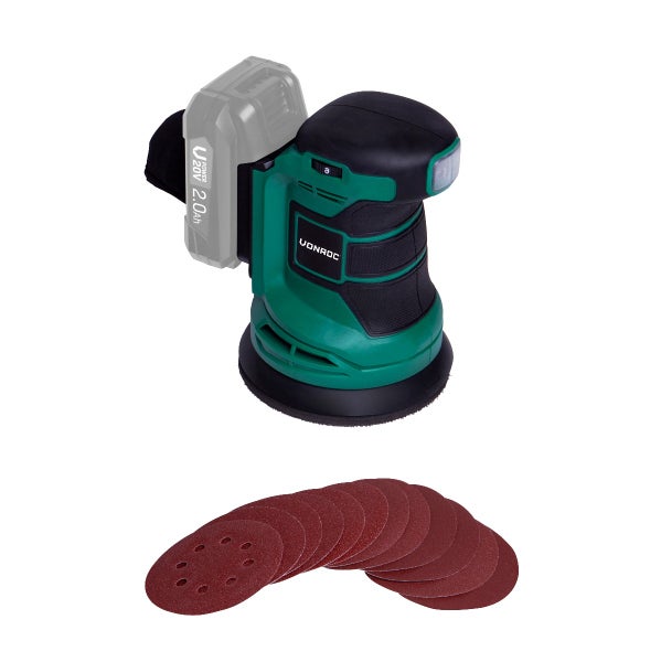 VONROC Exzenterschleifer – 20V (Exkl. Akku & Charger) – Ø125mm -– Staubb. & 12x Schleifpapier