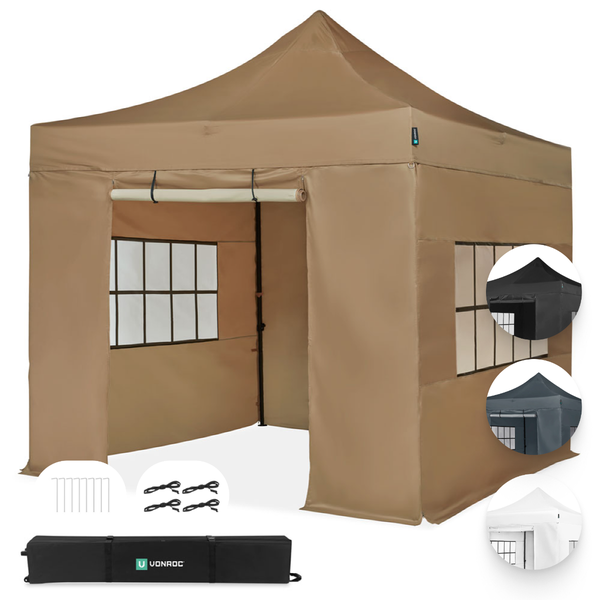 VONROC Pavillon 3x3m wasserdicht stabil - Partyzelt EasyUp System [3Min Aufbau] Popup Faltpavillon modular erweiterbar als Festival Zelt, Gartenpavillon