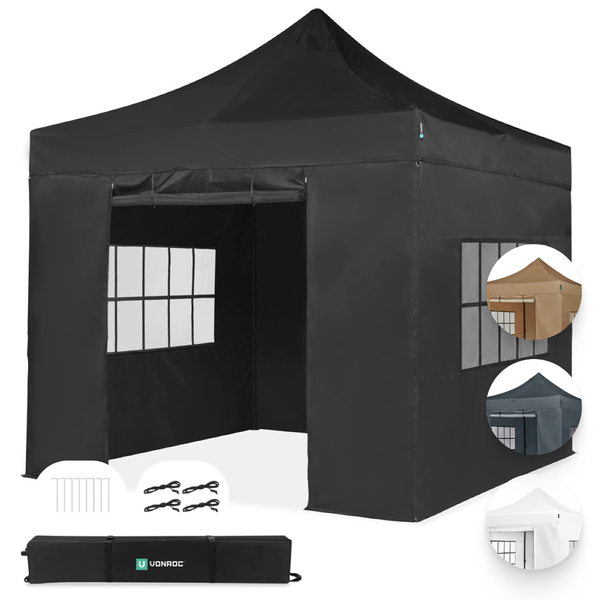 VONROC Pavillon 3x3m wasserdicht stabil - Partyzelt EasyUp System [3Min Aufbau] Popup Faltpavillon modular erweiterbar als Festival Zelt, Gartenpavillon