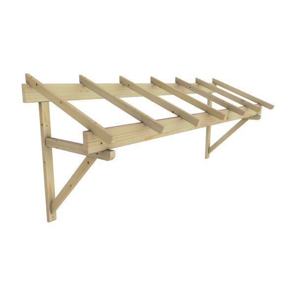 Dieses Vordach wurde als praktische und stilvolle Überdachung entworfen und lässt sich leicht selbst zusammenbauen. Es schützt Ihre Haustür vor Witterungseinflüssen und fallenden Blättern. Die Konstruktion aus unbehandeltem Holz wird ohne Dacheindeckung verkauft und kann nach Belieben mit Dachziegeln bestückt oder mit einer Platte aus Kunstglas (nicht im Lieferumfang enthalten) versehen werden.
