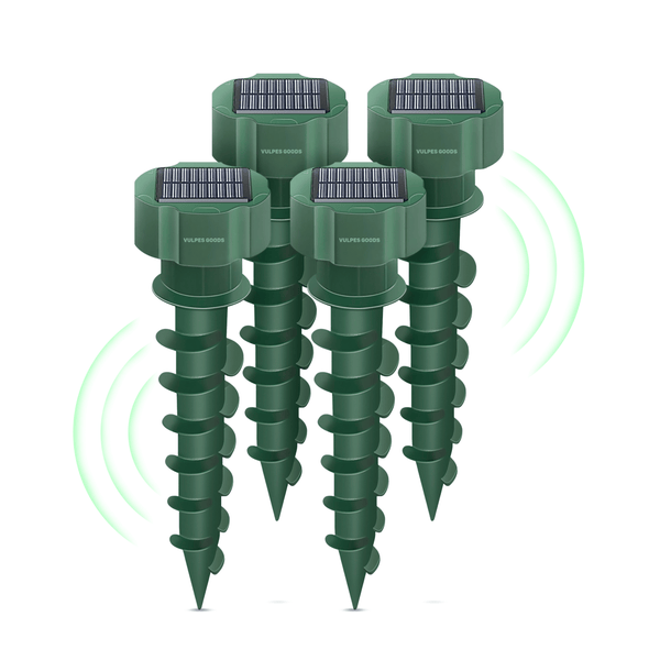 Vulpes Goods Maulwurfabwehr - Ultraschall Maulwurfschreck - Maulwurfvertreiber - Flexible Verwendung durch Solarmodul - 4 Stück
