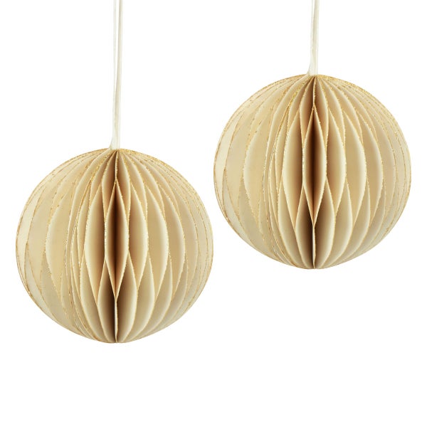Wabenbälle Deko Weihnachten Vintage Creme Gold Ø8cm 4er Set, 4 Stück