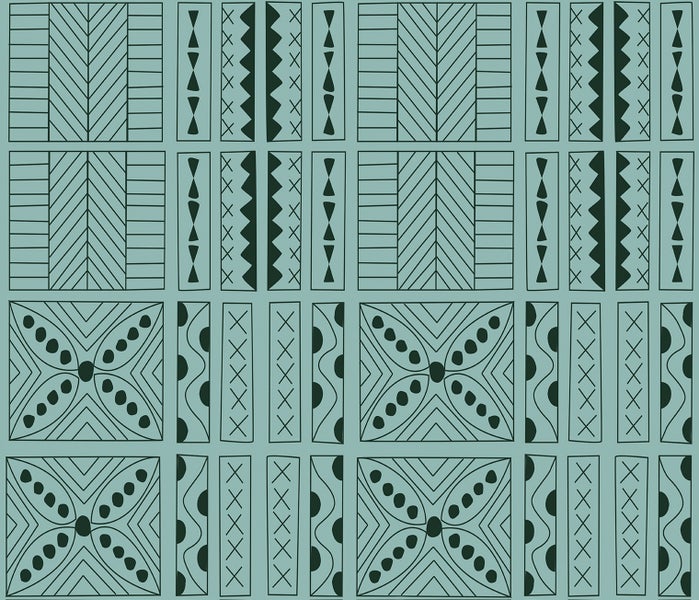 Diese schöne und trendige Tapete mit ethnischen Motiven in Türkis und Schwarz macht jede Wand zu einem wahren Hingucker und sorgt für eine angenehme Atmosphäre.
