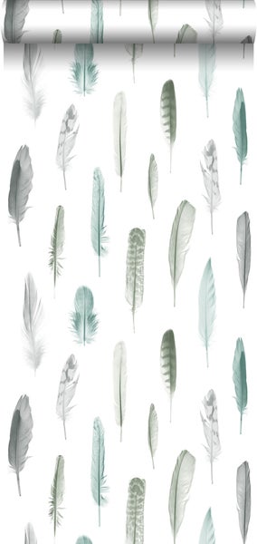 Diese trendige und stimmungsvolle Tapete mit Federn in Grau, Blau und Weiß ist ein absolutes Must-Have! Sie verleiht jedem Wohnraum einen frischen Look und schafft eine warme, stimmungsvolle Atmosphäre.
