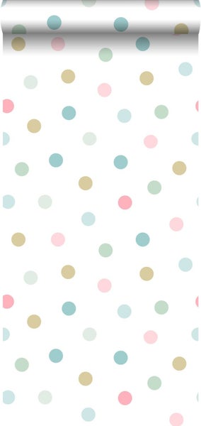 Walls4You Tapete große Punkte Blau, Grün und Rosa 53 cm x 10.05 m