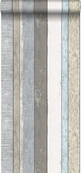 Walls4You Tapete Holz-optik Grau, Blau und Beige 53 cm x 10.05 m