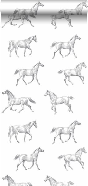 Walls4You Tapete Pferde Grau und Weiß 53 cm x 10.05 m